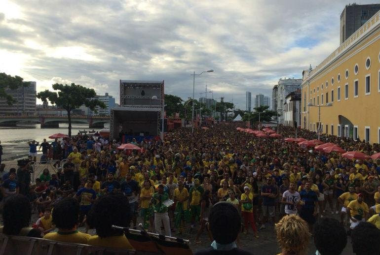 Torcida acompanha jogo do Brasil no Recife e lamenta empate